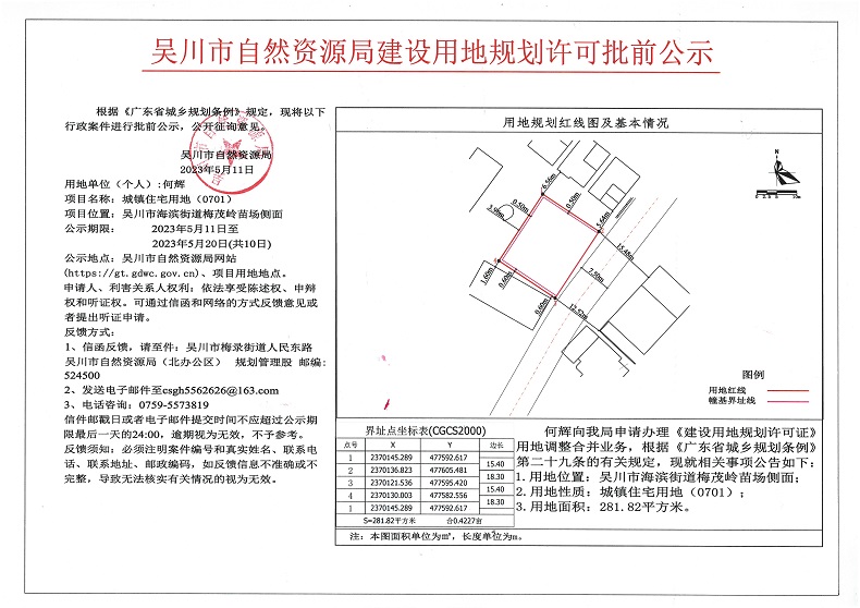吴川市自然资源局建设用地规划许可批前公示(何辉)