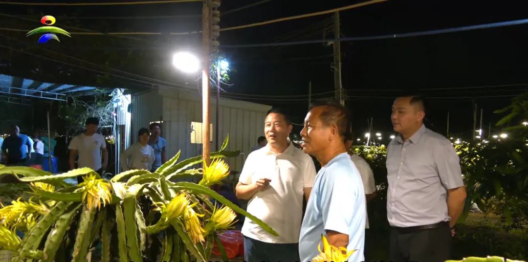 振文镇副镇长王辉德、中国邮政集团吴川分公司副总经理李思荣、市农业生产托管服务中心主任林泰亨等领导与火龙果种植户首先参观了振文镇泗岸村上坉兴福满园种植农场火龙果种植基地。