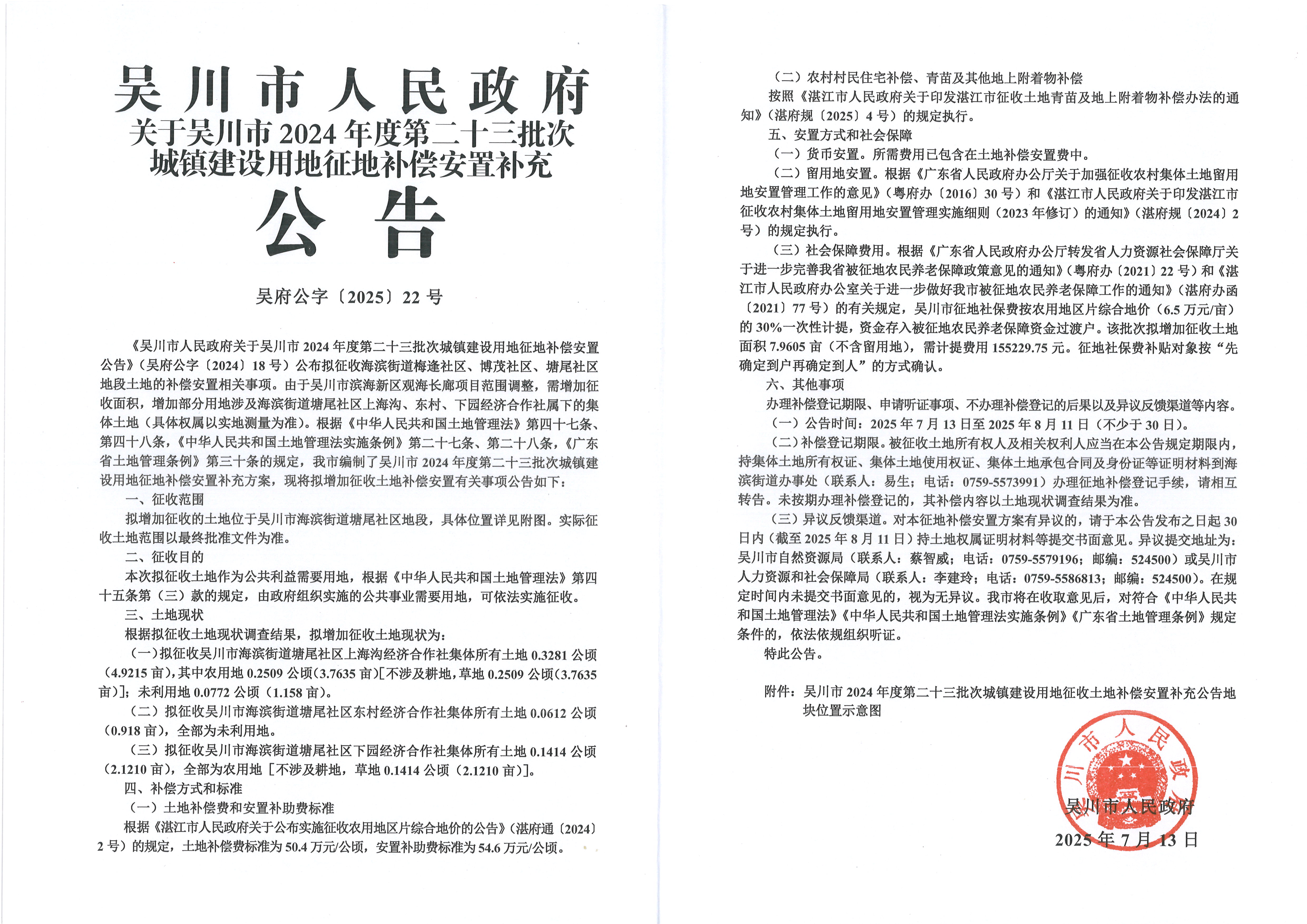 吴川市人民政府关于吴川市2024年度第二十三批次城镇建设用地征地补偿安置补充公告