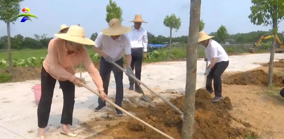 在下榨油村的入村道路,参与植树的党员干部热情高涨、干劲十足。大家三五一组,分工协作,扶正树杆、挥铲培土、踩实新土、提水浇灌,共同种下一棵棵生机勃勃的香樟树,用实际行动为覃巴镇乡村增绿添美。