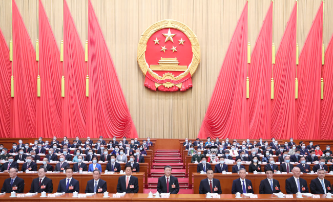 3月5日,第十四届全国人民代表大会第一次会议在北京人民大会堂开幕。党和国家领导人习近平、李克强、栗战书、汪洋、李强、王沪宁、韩正、蔡奇、丁薛祥、李希、王岐山等出席会议。 新华社记者 鞠鹏 摄