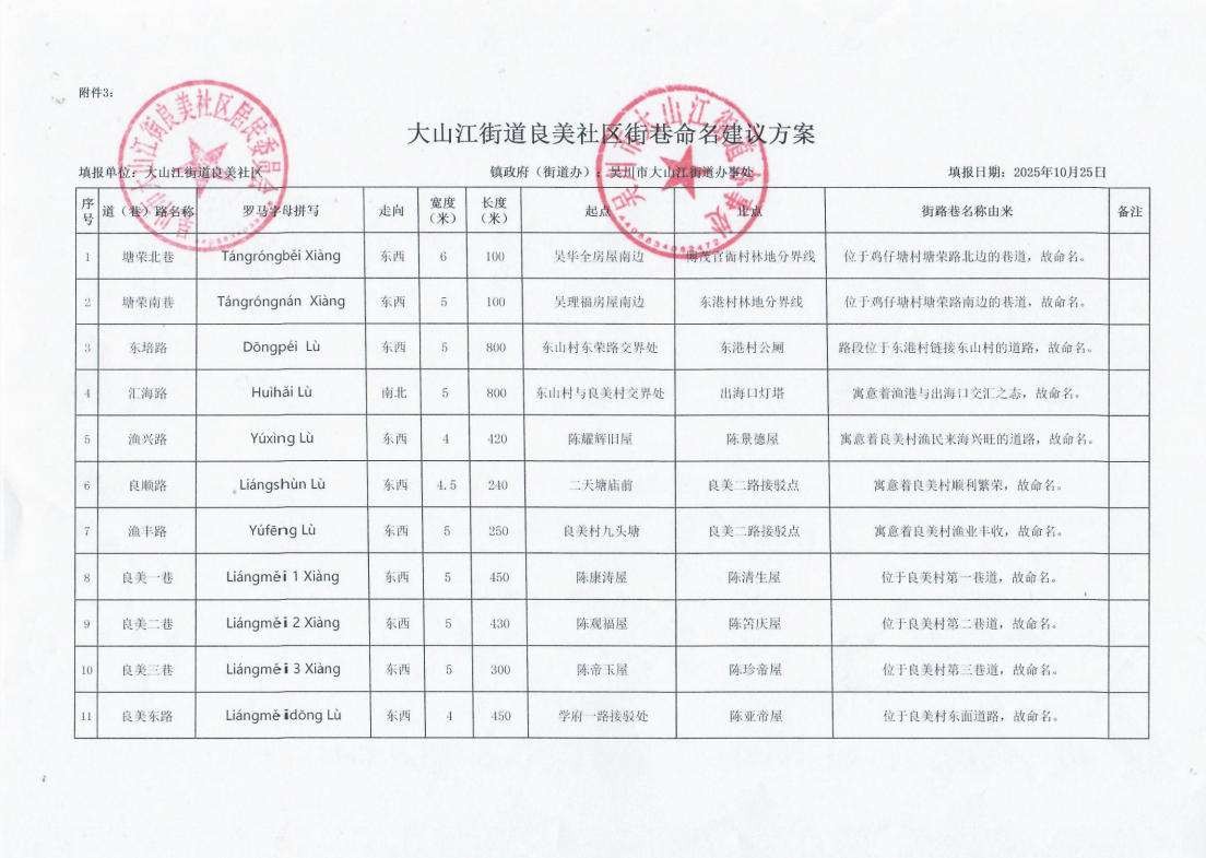 关于大山江街道良美社区街路巷拟命名方案的公示