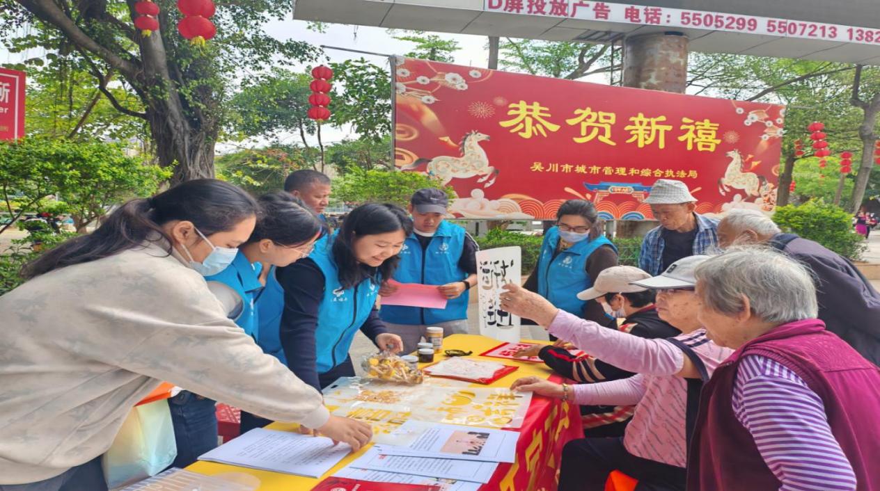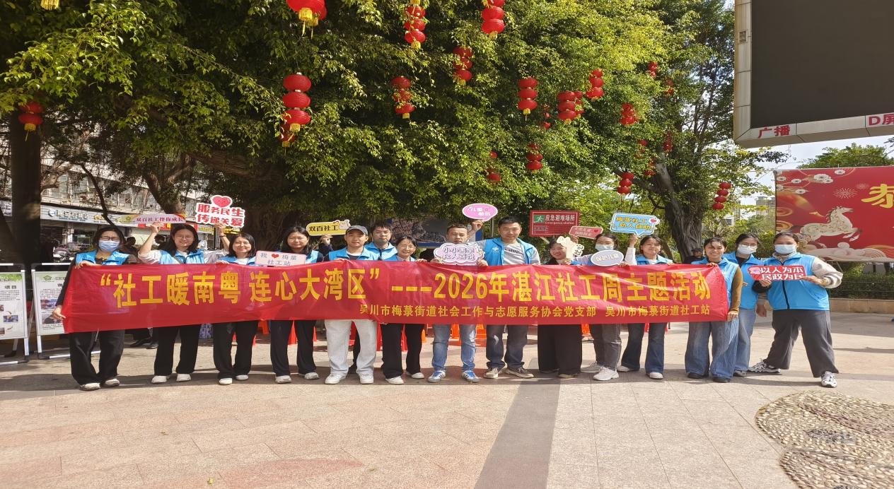 2026年3月17日,梅菉街道社工站在大塘公园开展“社工暖南粤 连心大湾区”主题活动。在活动现场,社工耐心为群众讲解兜底民生相关政策,细致解答低保、养老服务等疑问,践行“南粤暖心”专项行动要求,在轻松氛围中传递社工服务理念。