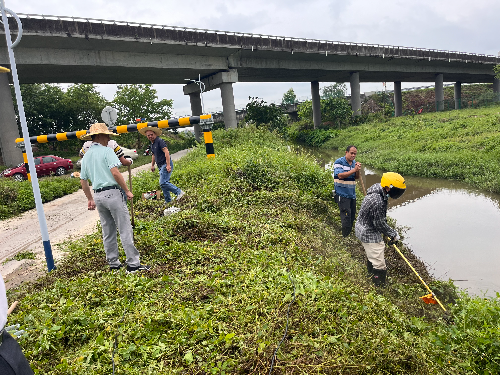 市水务局组织干部职工在南盛引鉴浅水镇水口坡村段干渠清理杂草、杂木,治理干渠渠堤渗流的隐患。