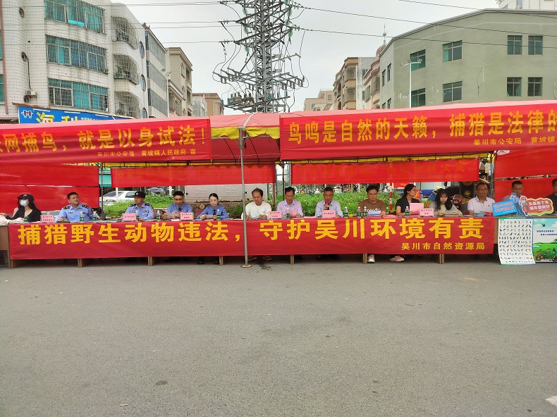 为深入贯彻落实《全国保护鸟类活动和打击非法捕猎贩卖鸟类专项行动联合工作方案》相关规定,全面践行习近平生态文明思想,持续加强生态环境保护工作,引导广大群众关注鸟类等野生动植物保护,积极开展生态环境保护宣传教育与引导工作,我市组织开展了以“打击非法捕猎,保护绿美吴川”为主题的宣传活动。此次活动由吴川市检察院、吴川市自然资源局、吴川市委宣传部联合主办,旨在通过广泛宣传相关法律法规和科普知识,进一步提升全社会保护野生动植物和森林防火的意识,营造全民参与的良好氛围。