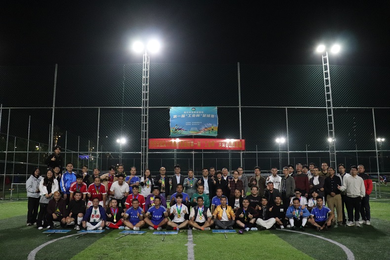 2025 年 12 月 12 日,吴川市自然资源局第一届 “工会杯” 足球赛在华和足球场圆满闭幕,局党组书记、局长陈国威及全体班子成员,与 5 支参赛队队员、裁判组和干部职工代表共同见证赛事收官。