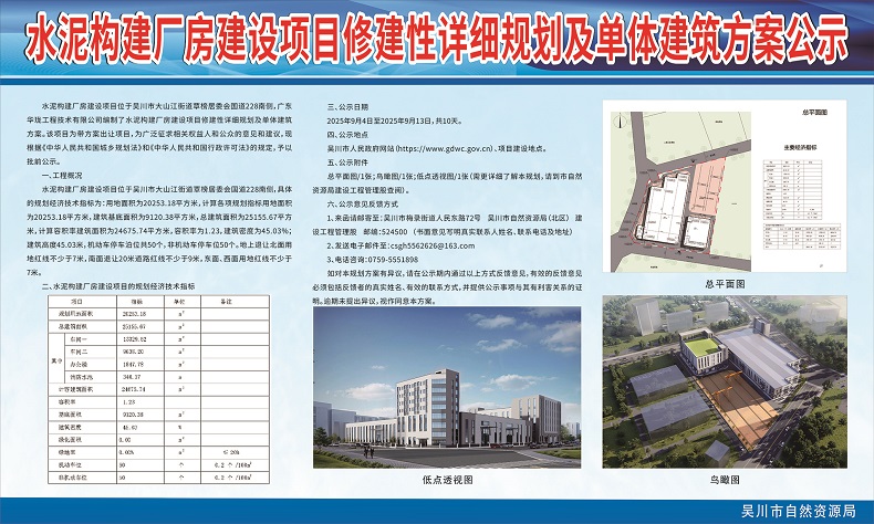 水泥构建厂房建设项目修建性详细规划及单体建筑方案公示
