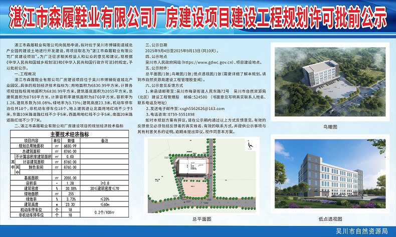 湛江市森履鞋业有限公司厂房建设项目建设工程规划许可批前公示