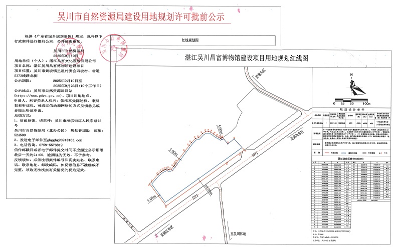 吴川市自然资源局建设用地规划许可批前公示(湛江昌富文化发展有限公司)