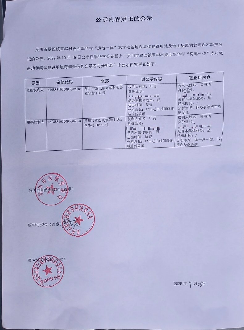 吴川市覃巴镇覃华村委会覃华村“房地一体”农村宅基地和集体建设用地及地上房屋的权属和不动产登记的公告