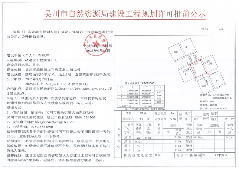 吴川市自然资源局建设工程规划许可批前公示(石燕辉)