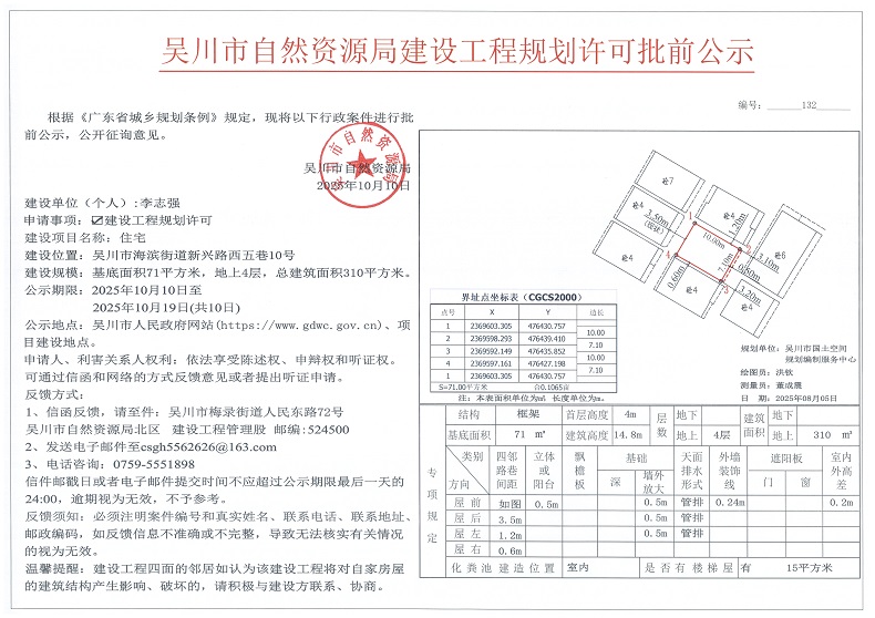吴川市自然资源局建设工程规划许可批前公示(李志强)