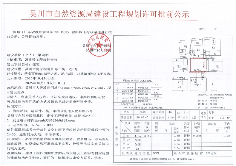 吴川市自然资源局建设工程规划许可批前公示(梁瑞明)