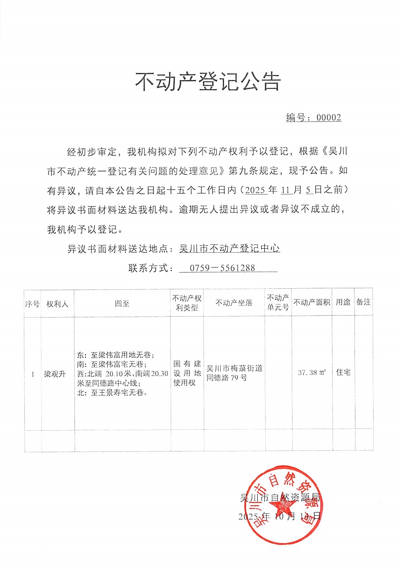 不动产登记公告(梁观升)
