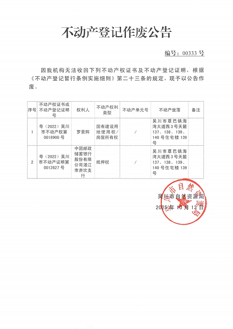 不动产登记作废公告(罗景辉)