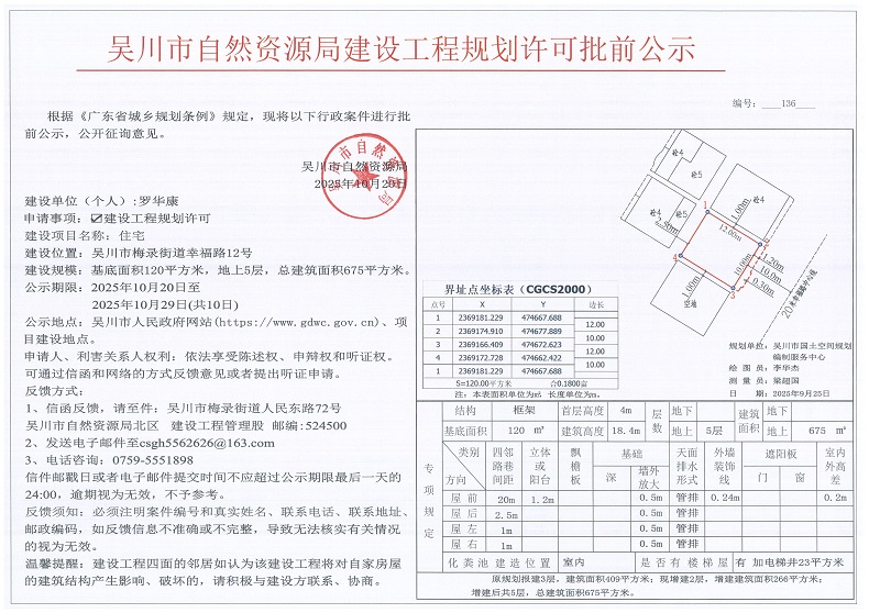 吴川市自然资源局建设工程规划许可批前公示(罗华康)