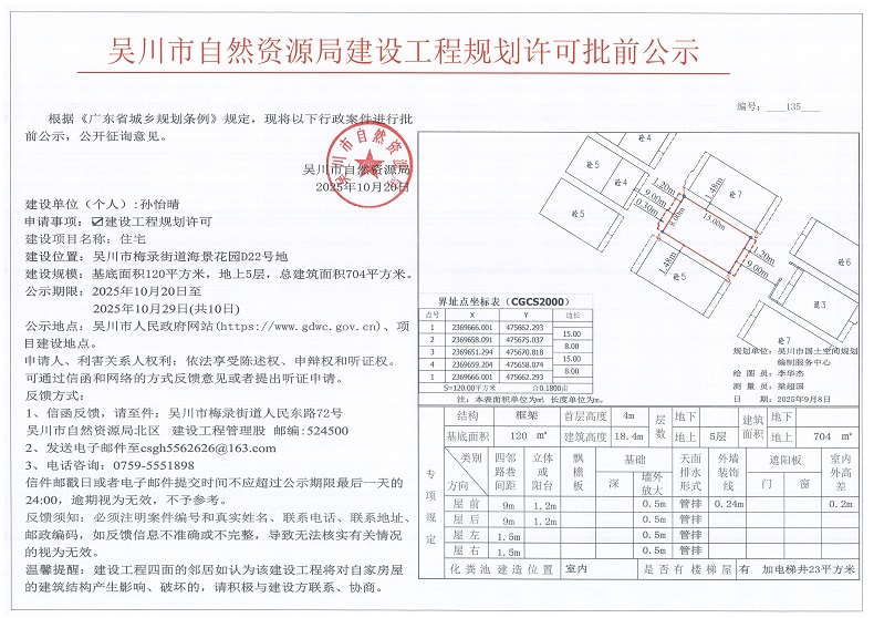 吴川市自然资源局建设工程规划许可批前公示(孙怡晴)