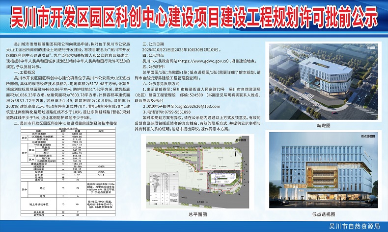 吴川市开发区园区科创中心建设项目建设工程规划许可批前公示