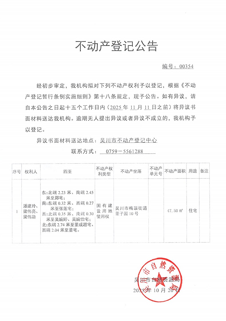 不动产登记公告(潘建玲、梁伟亮、梁伟郧)