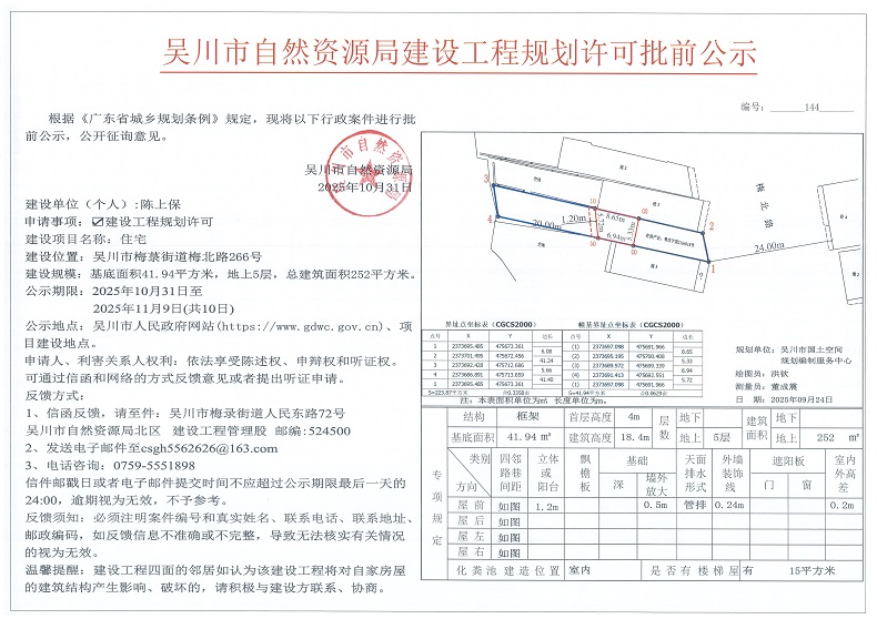 吴川市自然资源局建设工程规划许可批前公示(陈上保)