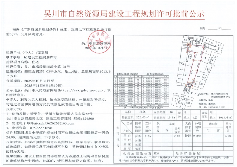 吴川市自然资源局建设工程规划许可批前公示(谭嘉麟)