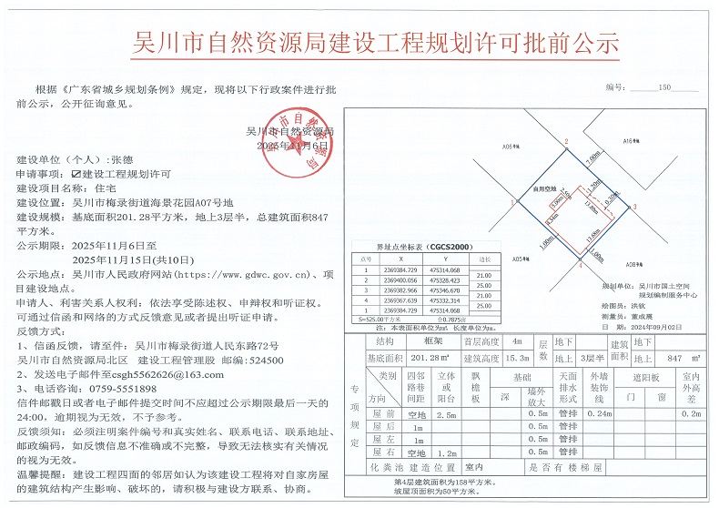 吴川市自然资源局建设工程规划许可批前公示(张德A07号地)