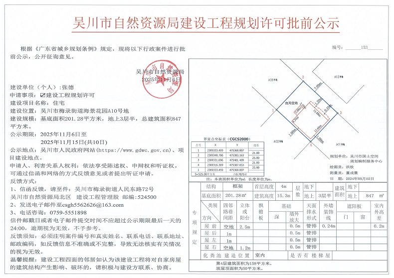 吴川市自然资源局建设工程规划许可批前公示(张德A10号地)