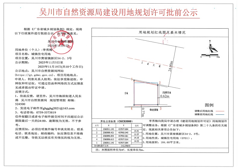 吴川市自然资源局建设用地规划许可批前公示(李秀梅)