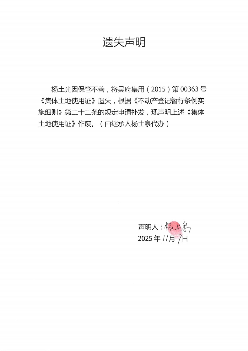 遗失声明(杨土光)