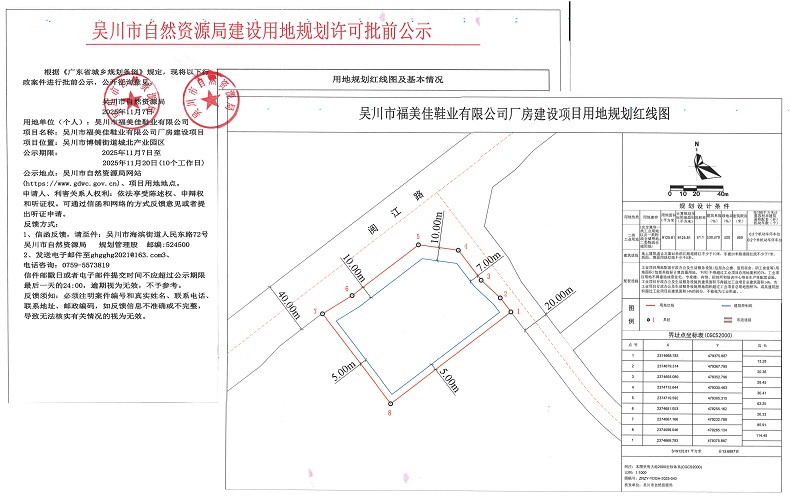 吴川市自然资源局建设用地规划许可批前公示(吴川市福美佳鞋业有限公司)
