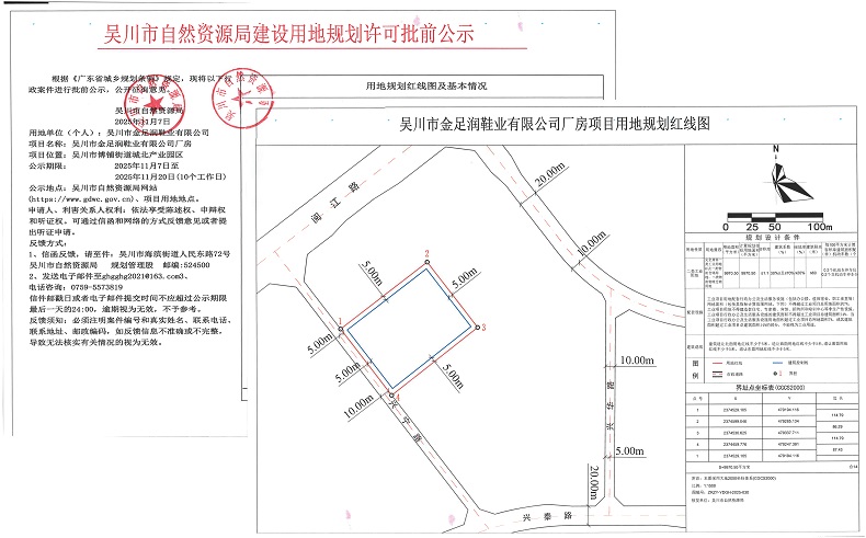 吴川市自然资源局建设用地规划许可批前公示(吴川市金足润鞋业有限公司)