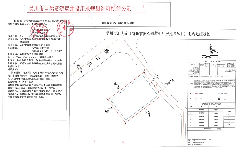 吴川市自然资源局建设用地规划许可批前公示(吴川市汇力企业管理有限公司)