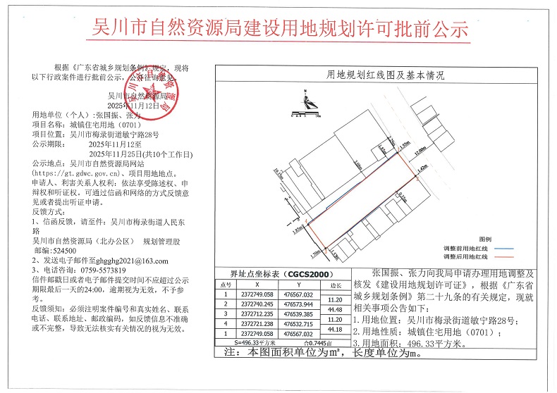 吴川市自然资源局建设用地规划许可批前公示(张国振、张力)
