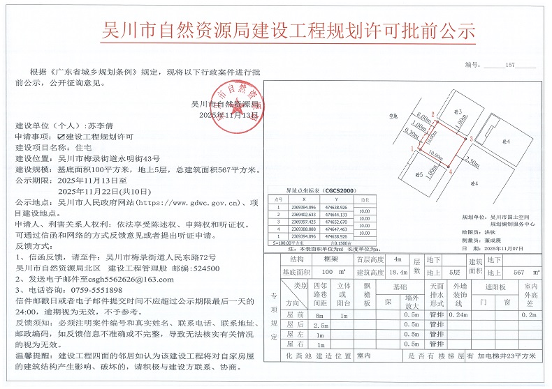 吴川市自然资源局建设工程规划许可批前公示(苏李倩)