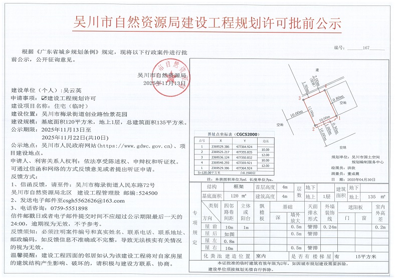 吴川市自然资源局建设工程规划许可批前公示(吴云英(临时))