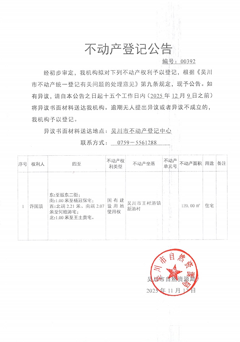 不动产登记公告(许国顶)