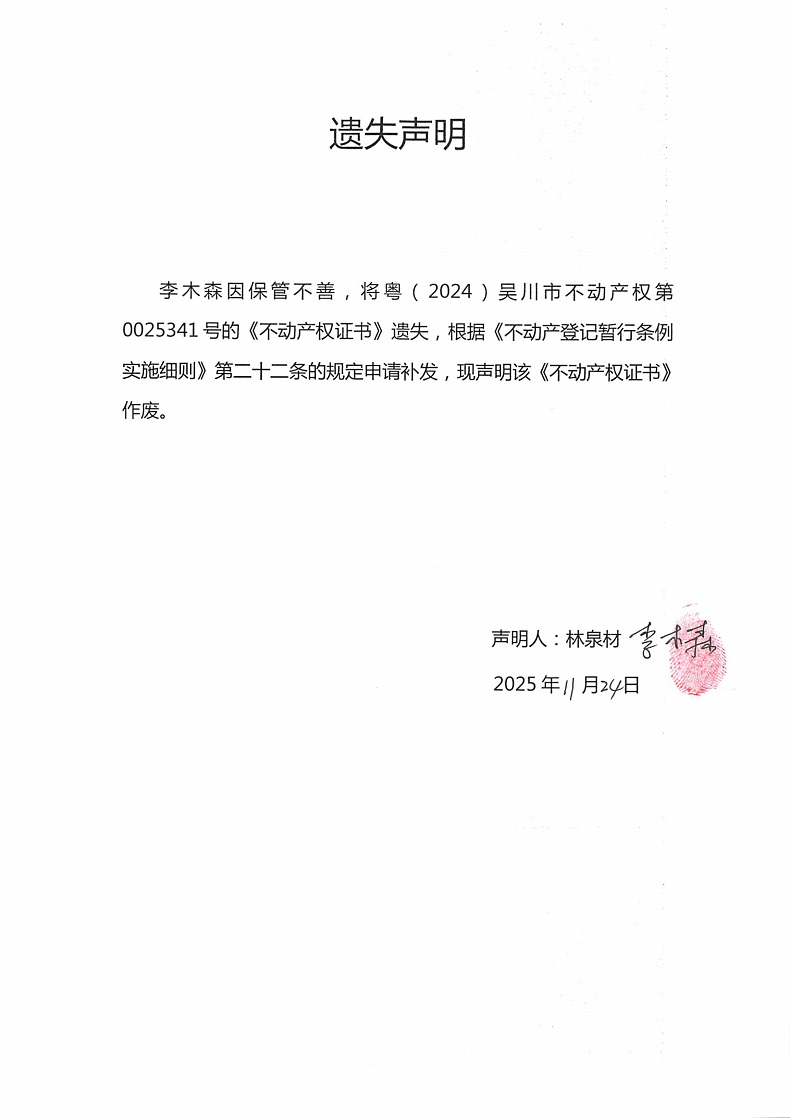 遗失声明(李木森)