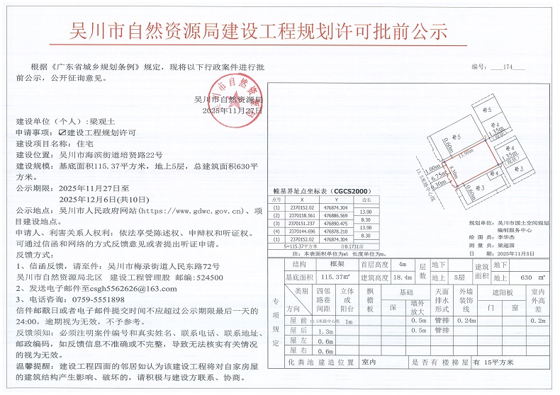 吴川市自然资源局建设工程规划许可批前公示(梁观土)