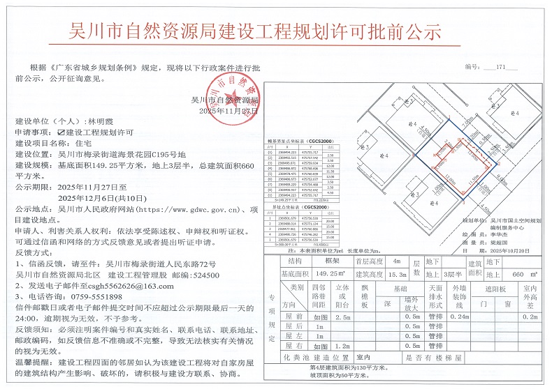 吴川市自然资源局建设工程规划许可批前公示(林明霞)