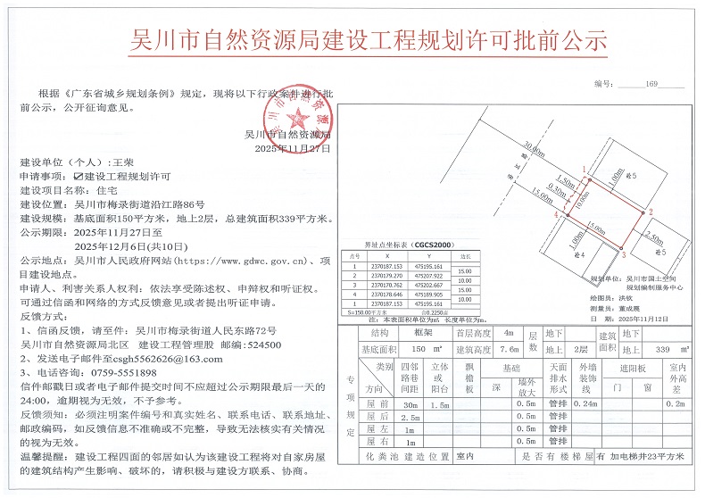 吴川市自然资源局建设工程规划许可批前公示(王荣)