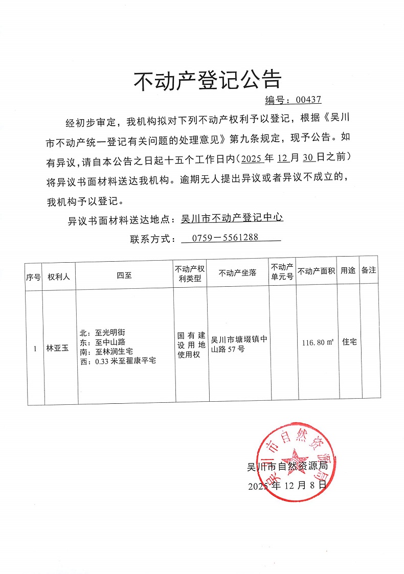不动产登记公告(林亚玉)