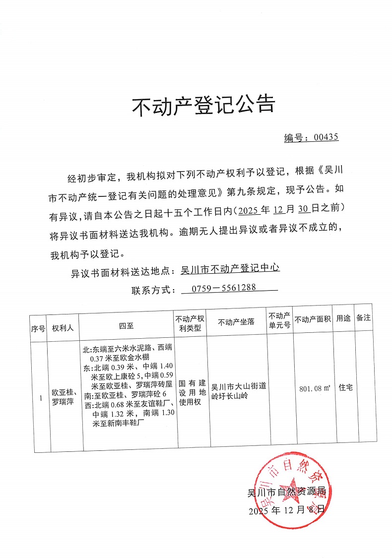 不动产登记公告(欧亚桂、罗瑞萍)