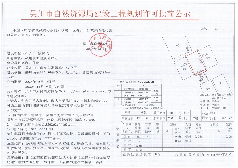 吴川市自然资源局建设工程规划许可批前公示(梁汉均)