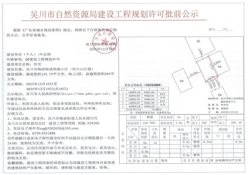 吴川市自然资源局建设工程规划许可批前公示(叶志琛)