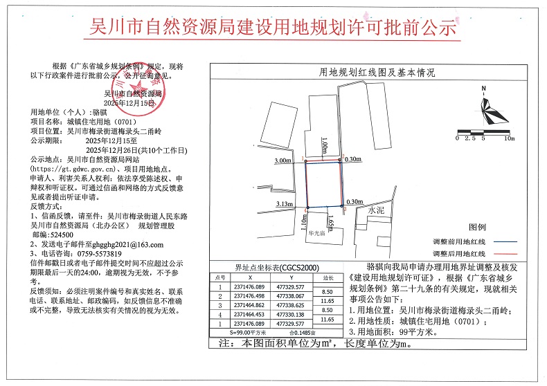 吴川市自然资源局建设用地规划许可批前公示(骆骐)