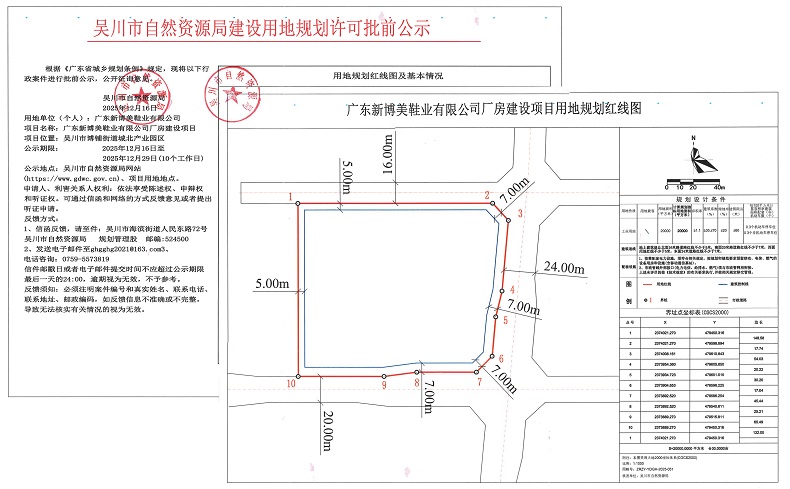 吴川市自然资源局建设用地规划许可批前公示(广东新博美鞋业有限公司)