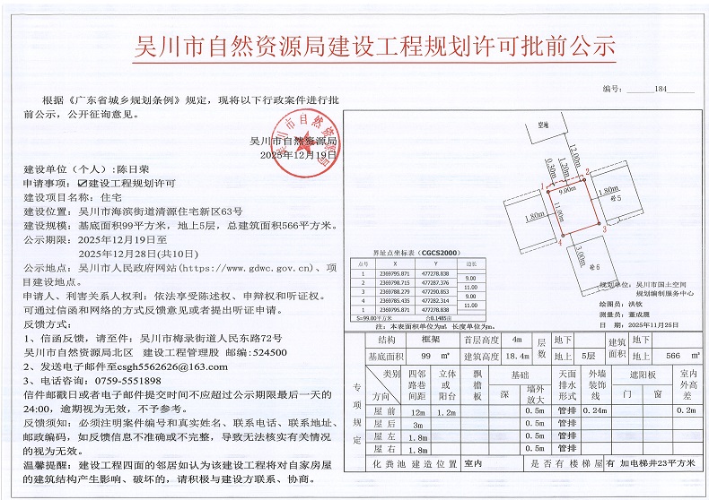 吴川市自然资源局建设工程规划许可批前公示(陈日荣)