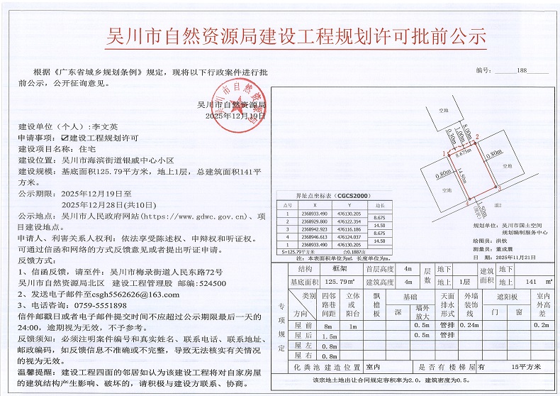 吴川市自然资源局建设工程规划许可批前公示(李文英)