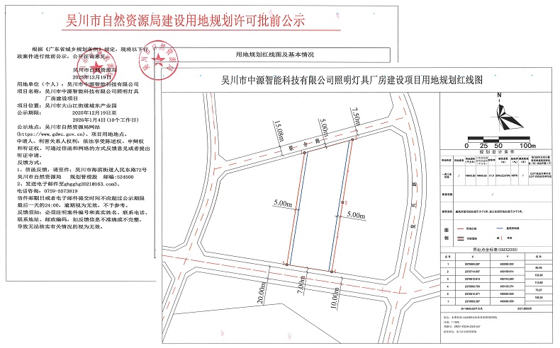 吴川市自然资源局建设用地规划许可批前公示(吴川市中源智能科技有限公司照明灯具厂房建设项目)