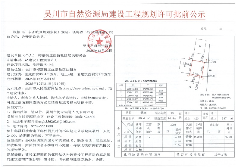 吴川市自然资源局建设工程规划许可批前公示(梅菉街道红新社区居民委员会)